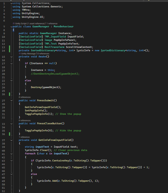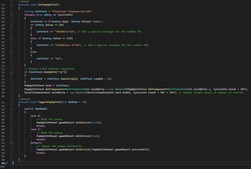 Next we have Wordle. Basic, simple, right? Wrong. There’s a lot more complexity in Wordle than many may think. If you notice, none of those previous guesses were real words. This is a limiter I had to add later on. As well, you need to pull from a list of words to randomize what word the player must guess each time. I did that nearly last, right before the word guessing limiter. Fortunately, I had a txt file from my Programming 1 class that contains all the Wordle words they had us download. I simply used that.